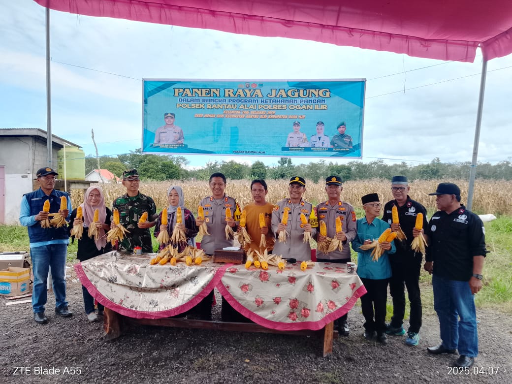 OGAN ILIR, Kilasnusantara.id – Kapolres Ogan Ilir AKBP Bagus Suryo Wibowo, S.I.K., menghadiri kegiatan Panen Raya Jagung Program Ketahanan Pangan yang digelar Polsek Rantau Alai pada Senin (7/4/2025) di Dusun I, Desa Mekarsari, Kecamatan Rantau Alai, Kabupaten Ogan Ilir. Kegiatan ini merupakan upaya mendukung program ketahanan pangan nasional melalui kolaborasi antara Polri, pemerintah setempat, dan kelompok tani.