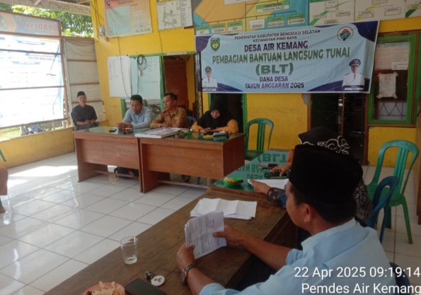 BENGKULU SELATAN, KilasNusantara.id — 22 April 2025, Pemerintah Desa Air Kemang menyalurkan Bantuan Langsung Tunai (BLT) kepada 15 Keluarga Penerima Manfaat (KPM) untuk periode Januari hingga Maret 2025.