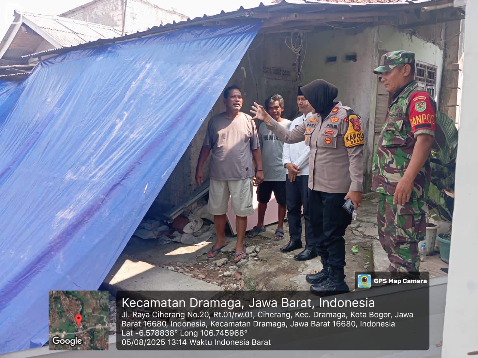 Kapolsek Dramaga Polres Bogor, IPTU Desi Triana.,S.H.,M.H melaksanakan kegiatan pengecekan Tanah Longsor di Ciherang Gede Rt.01/01 Desa Ciherang Kecamatan Dramaga Kabupaten Bogor, bersama Camat Dramaga, PS Kanit Intelkam Polsek Dramaga, Danpos Koramil Dramaga, Bhabinkamtibmas Desa Ciherang, juga perangkat Desa setempat Ketua RT dan Ketua RW. Selasa (05/08/2025).