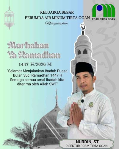 OGAN ILIR, Kilasnusantara.id – Direktur Perumda Air Minum Tirta Ogan, Nurdin ST,. Beserta Seluruh Staf dan Jajaran Mengucapkan Marhaban Ya Ramadan 1447 H / 2026 H.