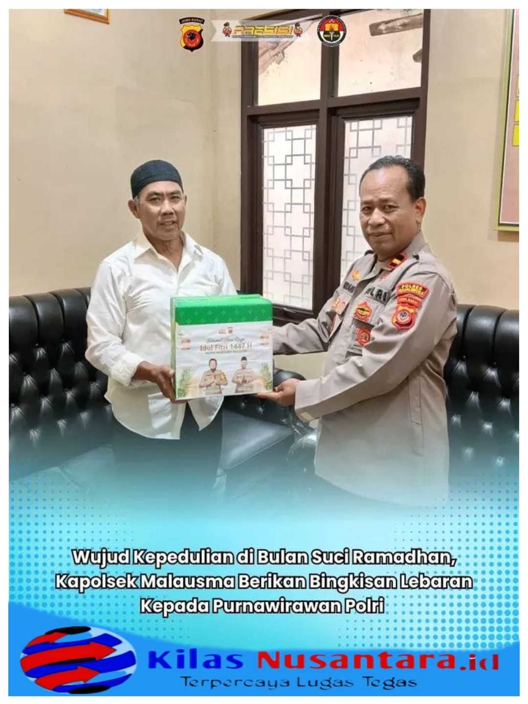 Sebagai wujud kepedulian dibulan suci Ramadahan dan menyambut hari raya idul Fitri 1447 H, Kapolsek Malausma Polres Majalengka IPDA Riyana membagikan bingkisan lebaran kepada purnawirawan Polri bertempat di Mako Polsek Malausma, Jumat (06/03/2026).